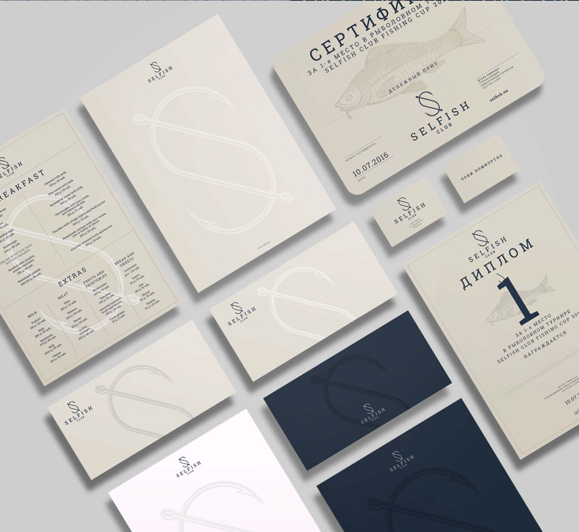 Selfish Club — приватна територія для тих, хто шукає глибини в кожному досвіді, де риболовля — лише старт. Це місце, де народжується спільність, загартовується характер і пульсує справжня енергія. Візуальна ідентичність передає цю силу. Два перехрещені гачки — точні, виважено зухвалі — стають знаком внутрішньої міці. Строга монохромна палітра підсилює непохитний дух клубу, а чітка типографіка фіксує його присутність у просторі. Дизайн, який не просто бачать — його відчувають.